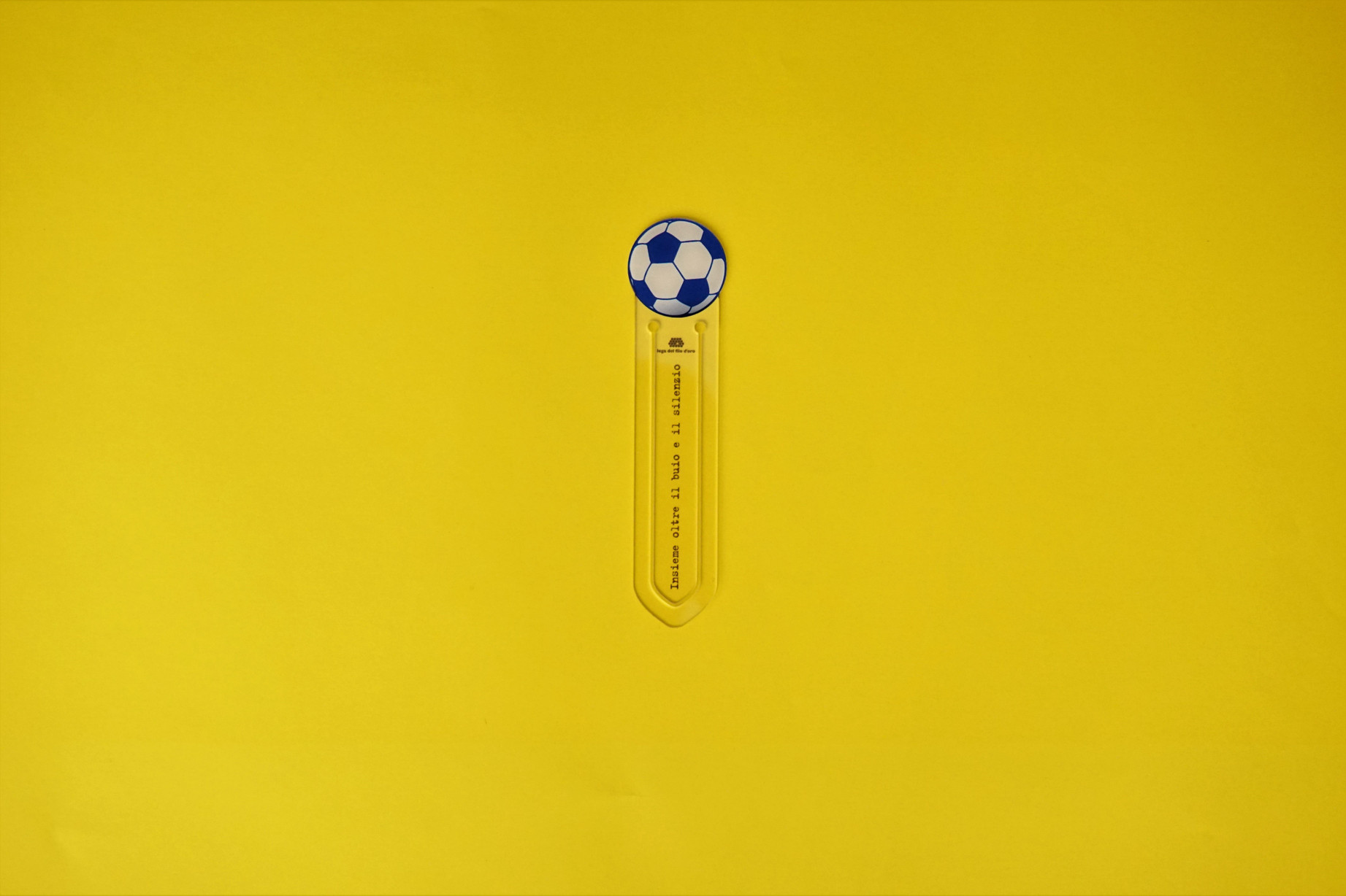 - un segnalibro in plexiglass a forma di pallone con frase "Insieme oltre il buio e il silenzio";